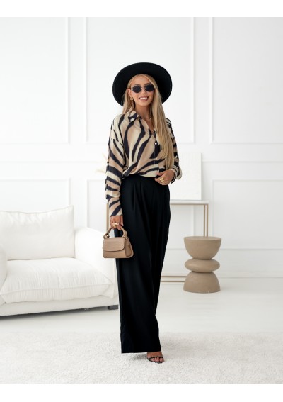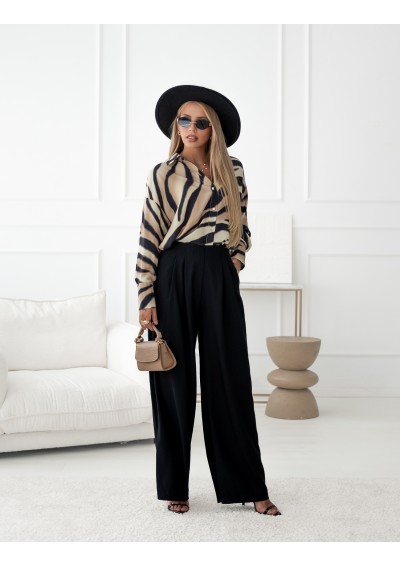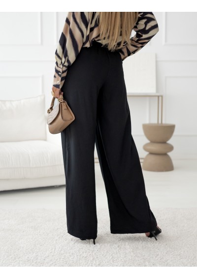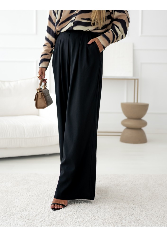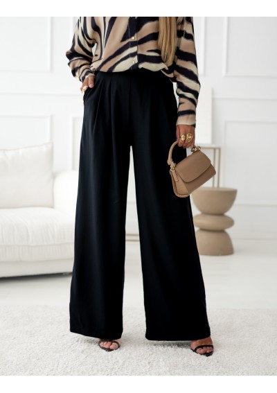 Spodnie firmy Simplicity, kolor czarny. Spodnie o luźnym, prostym kroju, z lejącej się tkaniny. W tylnej części guma oraz ukryty suwak. Zaszewki optycznie wydłużają nogi.