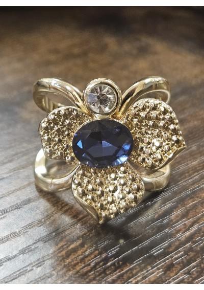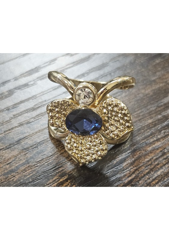 Spinka do gawroszki, pozłacana. Delikatny kwiat z granatowym dużym kamieniem.