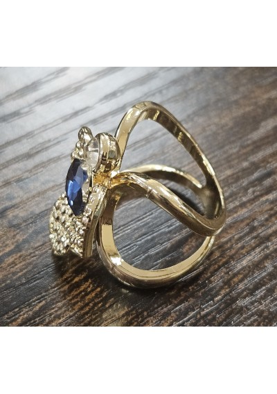 Spinka do gawroszki z granatowym kamieniem – elegancki dodatek w złotym kolorze, ozdobiony dużym, centralnym kamieniem w odcieniu szafiru. Stylowa i praktyczna, pozwala efektownie upiąć gawroszkę lub apaszkę, dodając całości luksusowego charakteru.