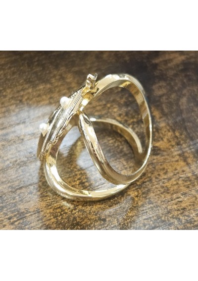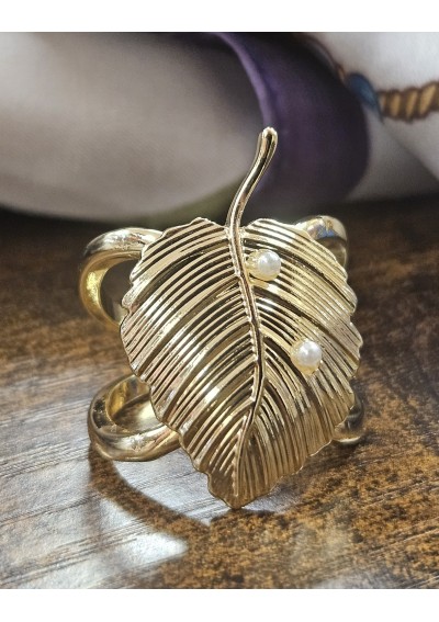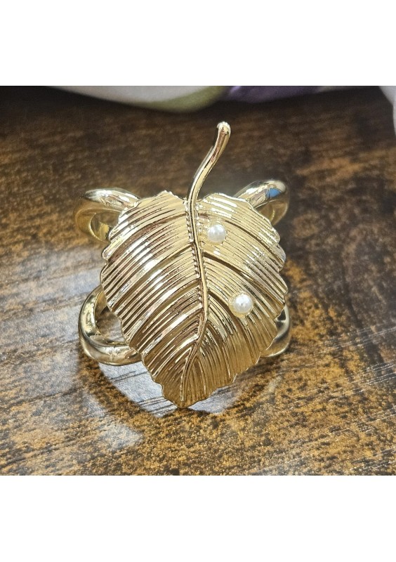 Spinka do gawroszki w kształcie liścia – elegancki dodatek w złotym kolorze ozdobiony delikatnymi perełkami. Stylowy i oryginalny design sprawia, że spinka nie tylko podtrzymuje gawroszkę czy apaszkę, ale staje się również biżuteryjną ozdobą, która doda klasy każdej stylizacji.