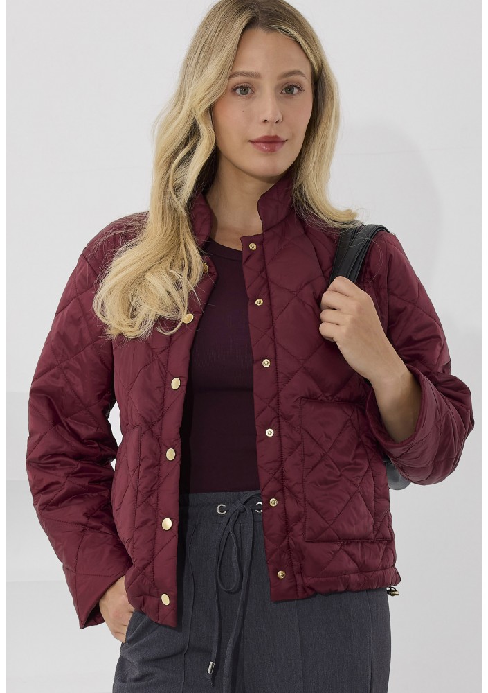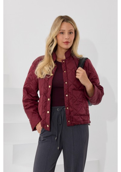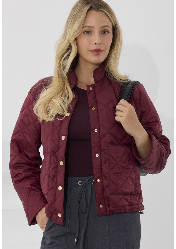 Kurtka damska pikowana od Salko w kolorze głębokiego bordo to idealny wybór na sezon jesienny. Krótki, prosty krój nadaje sylwetce nowoczesnego charakteru, a pikowany wzór i złote napy podkreślają elegancję. Kurtka posiada praktyczne kieszenie i wygodne zapięcie, dzięki czemu sprawdzi się zarówno na co dzień, jak i w bardziej stylowych zestawieniach.