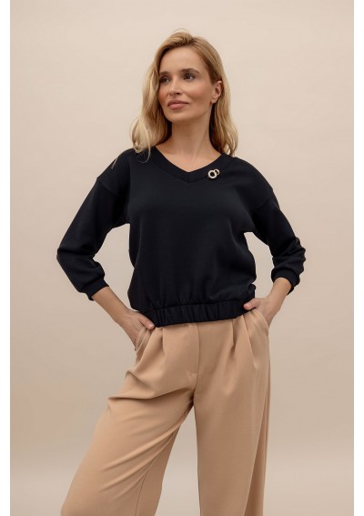 Czarna bluzka z pozłacanym zdobieniem - polska marka ZAPS.