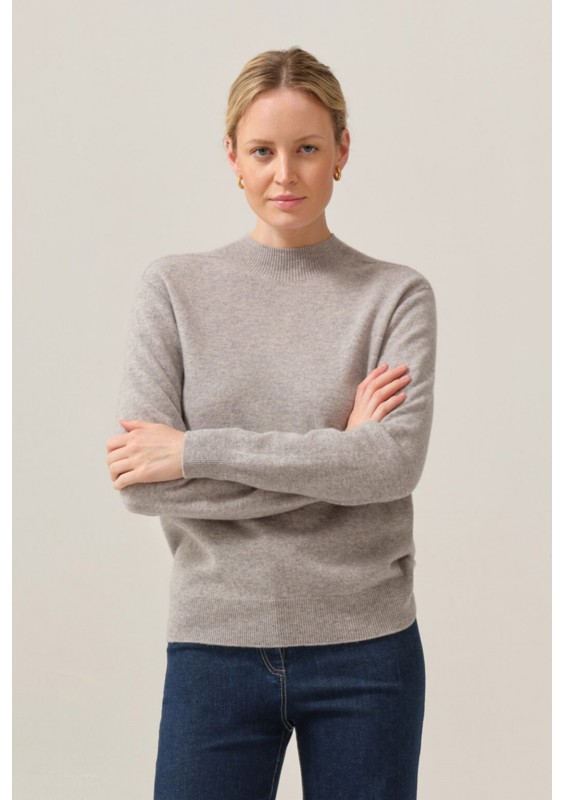 Sweterek w kolorze szary, z delikatnym półgolfem w 100% wykonany z wełny merino. Polska marka FERIA.