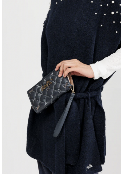 Stylowy portfel damski Anekke z kolekcji Mademoiselle to połączenie elegancji i funkcjonalności w unikalnym wydaniu. Utrzymany w klasycznym, granatowym kolorze z pikowanym wzorem i przeszyciami, które tworzą subtelne motywy nożyczek i nici – inspirowane rzemiosłem i pasją tworzenia.