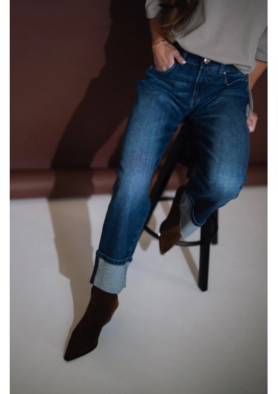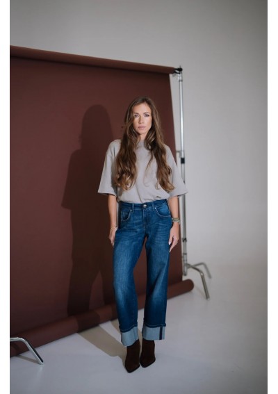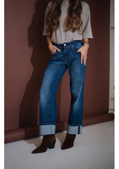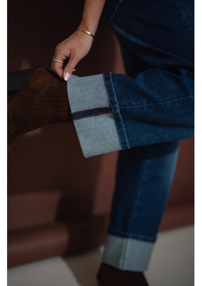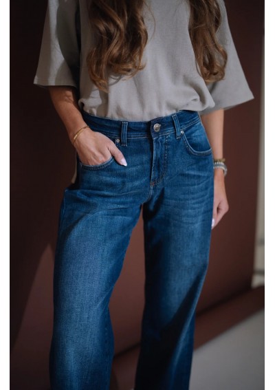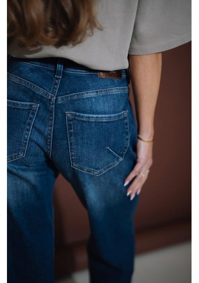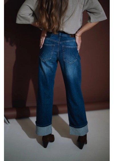 Nowoczesne jeansy Rocks Jeans to połączenie klasyki i współczesnego stylu. Model ze średnim stanem i szeroką nogawką pięknie podkreśla talię oraz wysmukla sylwetkę. Nogawki zakończone są modnym, szerokim mankietem, który dodaje całości charakteru i nonszalancji. Denim w odcieniu klasycznego granatu z delikatnym cieniowaniem to ponadczasowa baza do wielu stylizacji – zarówno codziennych, jak i bardziej eleganckich.