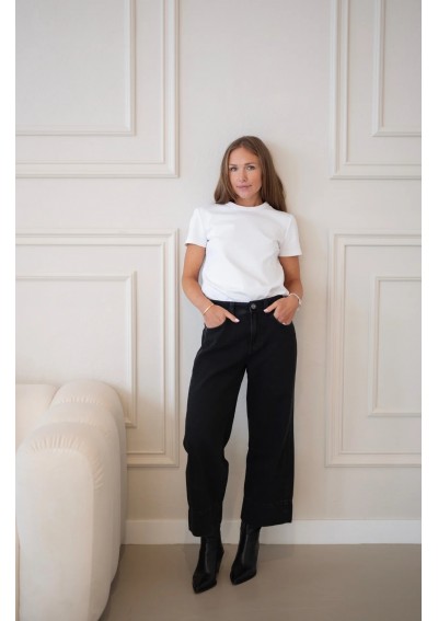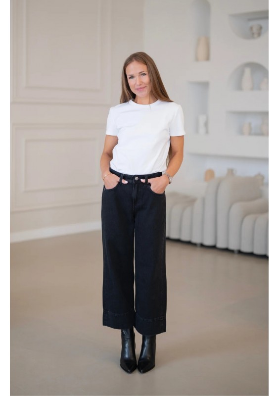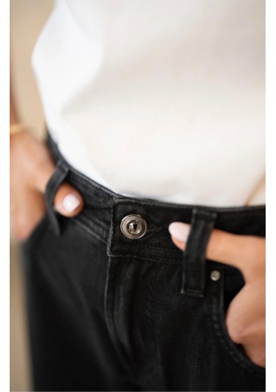 Jeansy marki Rocks Jeans o długości 7/8, nogawka zakończona szerokim mankietem. Piękny, czarny kolor. Skład:80 % bawełna organiczna, 20% bawełna PRC.