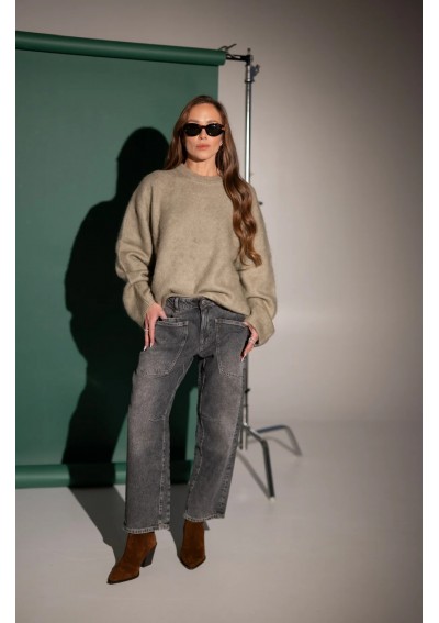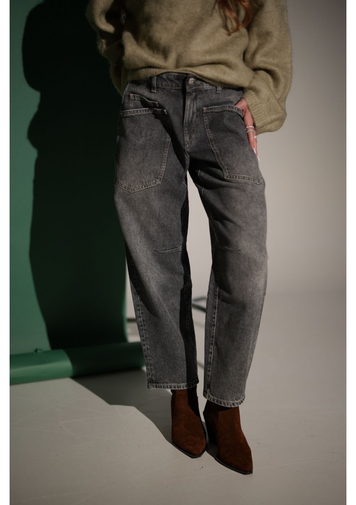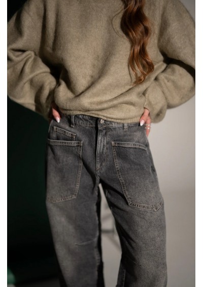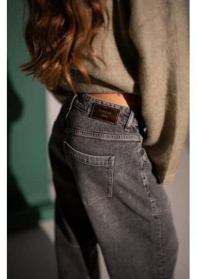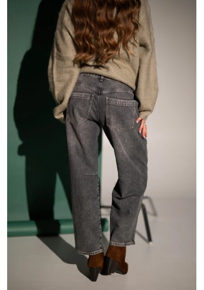 Stylowe jeansy w odcieniu szarości, które idealnie wpisują się w codzienne i casualowe stylizacje. Model o prostych lekko zwężanych nogawkach ku dołowi i wysokim stanie, pięknie podkreśla talię i zapewnia komfort noszenia przez cały dzień. Ten model to ponadczasowa baza do wielu zestawów – od swetra i botków po koszulę i sneakersy.