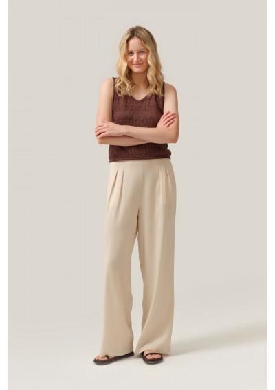 Model bez rękawów, z klasycznym dekoltem w kształcie litery V, pięknie podkreśla górne partie sylwetki i nadaje całości kobiecego charakteru. Głęboki, czekoladowo-brązowy kolor wpisuje się w naturalne, ponadczasowe trendy i świetnie komponuje się zarówno z jasnymi spodniami, jak i jeansami czy spódnicą.