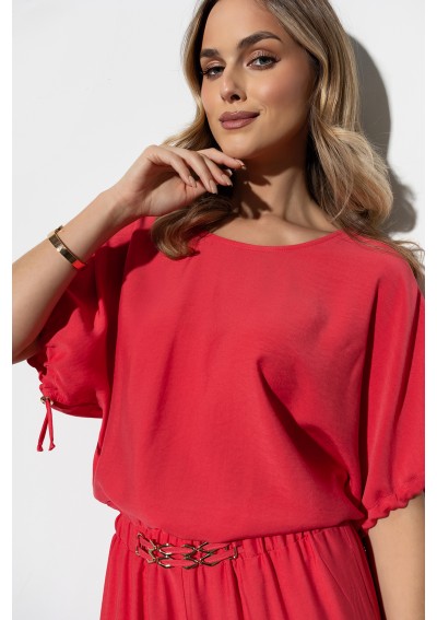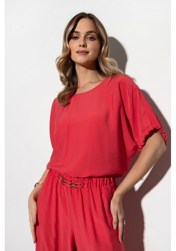 Elegancka bluzka damska ZAPS w kolorze czerwonym. Kobiecy fason z luźnym rękawem i efektownym wycięciem na plecach. Do kompletu polecamy spodnie Bobby.