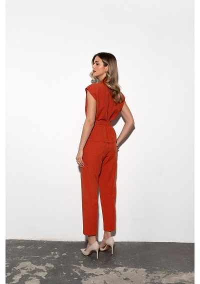 Stylowa kamizelka damska marki ZAPS to propozycja dla kobiet, które cenią nowoczesną elegancję i uniwersalne fasony. Ciepły, ceglasty odcień przyciąga wzrok i doskonale wpisuje się w aktualne trendy. Model zapinany na guziki, z klasycznym kołnierzem oraz paskiem w talii, pozwala idealnie dopasować kamizelkę do sylwetki.