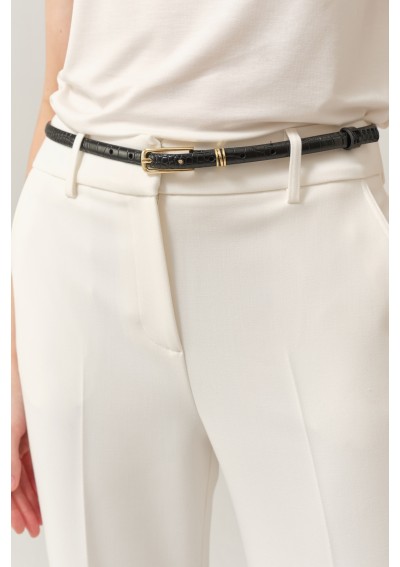 Kolor śmietankowej bieli jest niezwykle uniwersalny i ponadczasowy – doskonale komponuje się z marynarką z tej samej kolekcji, tworząc elegancki garnitur, ale równie dobrze wygląda w zestawieniu z lekką bluzką lub dzianinowym topem.