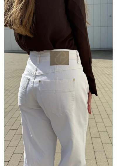 Jeansy marki Rocks Jeans o długości 7/8, nogawka zakończona szerokim mankietem. Piękny, śmietankowy kolor. Wykonane z miękkiego, naddającego się materiału.