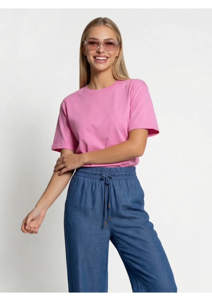 Klasyczny T-shirt w kolorze pudrowego różu z krótkim rękawem polskiego producenta WIBs. Wykonany z wysokogatunkowej bawełny.
