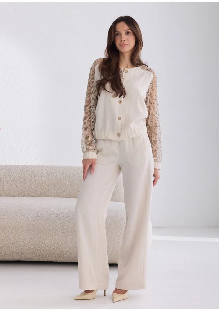 Spodnie damskie marki SALKO wykonane z lekkiej i przewiewnej wiskozy to idealna propozycja dla kobiet ceniących komfort i ponadczasowy styl. Model w jasnym odcieniu pięknie komponuje się z wiosenno-letnimi stylizacjami, dodając im subtelnej elegancji.